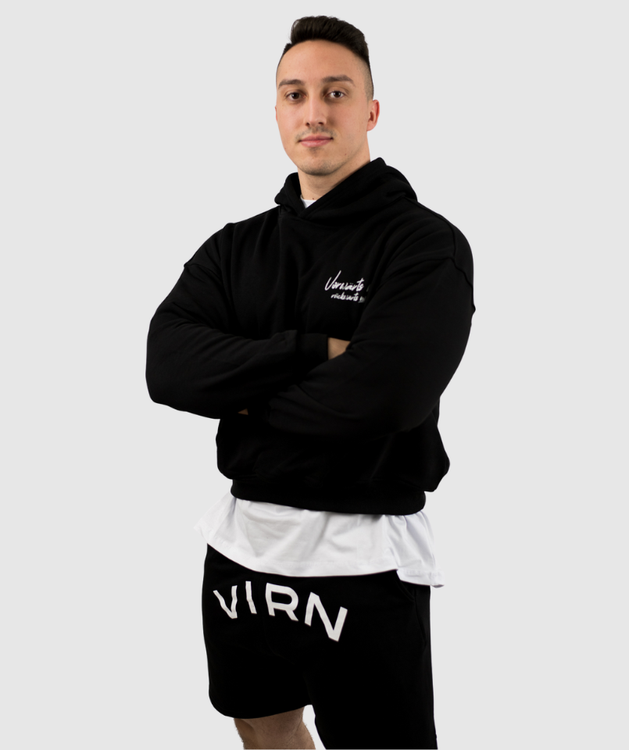 VIRN SET Boxy Hoodie + Shorts (BLACK) - MAN