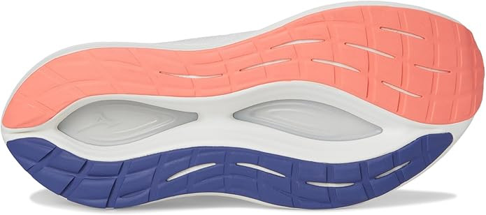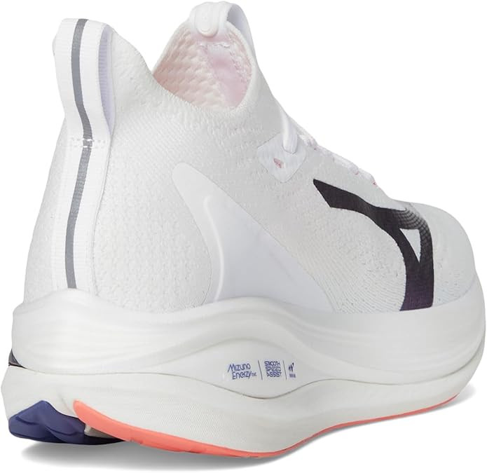- کمک سرعت روان: هندسهی خاص میزونو که برای حداکثر کارایی طراحی شده است. شیب قابل توجه پاشنه، فرود کارآمد در میانه پا را تقویت میکند، نقطه تماس میانه پا از ساق پا پشتیبانی میکند و راکر تهاجمی جلوی پا، انتقالی روان و پیشبرنده را ارائه میدهد.