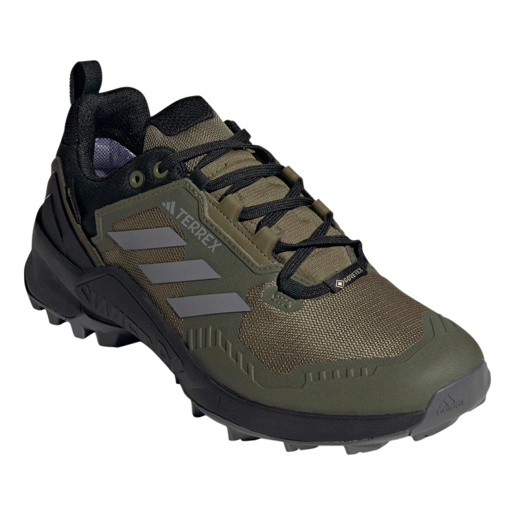 کفشهای پیادهروی آدیداس Terrex Swift R3 GORE-TEX طراحی سبک وزن و بالشتک کفشهای پیادهروی را با تطبیقپذیری و پایداری یک کفش کوهنوردی ترکیب میکنند. این کفش ها مجهز به بالشتک بسیار سبک لایت استرایک هستند که معمولاً در کفش های دویدن تریل استفاده می شود. جزء Pro-Moderator در Terrex Swift R3 ثبات جانبی را فراهم می کند و از قسمت میانی پا در برابر سایش بیش از حد در مسیرهای طولانی محافظت می کند. کفش Terrex Swift R3 که مجهز به زیره لاستیکی Continental است، ثبات و چسبندگی را در زمین های سنگی، گلی و سنگی در سطوح خشک و مرطوب فراهم می کند. غشای ضد آب GORE-TEX تهویه بسیار خوبی را فراهم می کند و از شما در برابر آب، گل و لای و رطوبت محافظت می کند.
