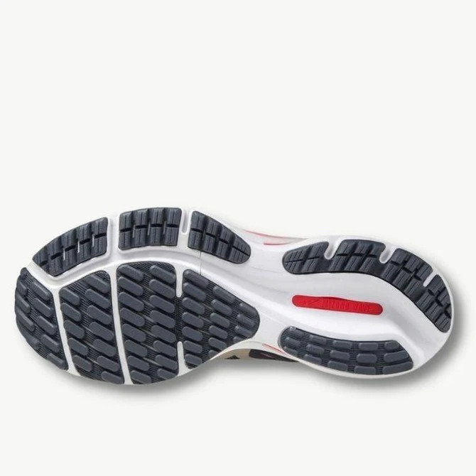 موج میزونو از یک موج پلاستیکی الاستیک و حرارتی بازطراحی شده تشکیل شده است که از پاشنه پا تا قسمت میانی پا جریان دارد و سواری فوقالعاده فنری و خوش حالتی را ایجاد میکند.